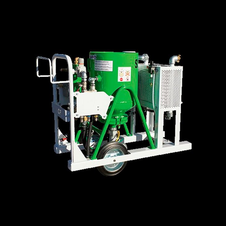Tres funciones: arenado sin polvo, ni rebotes de abrasivo, recuperación del abrasivo del suelo tras el arenado, recuperación y reciclaje del abrasivo del suelo tras su uso